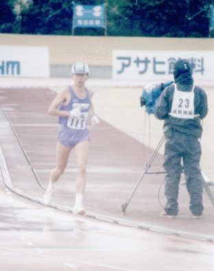 35km過ぎにとうとうマラソンの壁にぶつかり、手足を動かそうとするがペースは上がらなくなった。さらに、向かい風が吹き、雨も降り始めてきた。それにつられて腕がしびれ、体が寒くなってきた。もう、ここでレースは実質的に終わり、ただ距離をこなすだけだった。抜かれた選手に付いていく気力もない。35km〜40kmのラップは20分25秒と完全にjogの状態である(左の写真は競技場の第3コーナー付近)。ゴールは2時間31分47秒。30分を切れなかったため、次回の出場権を失ってしまった。参加標準記録は大会の2年前までのものが有効であり、次回までに記録(フル2時間30分以内、ハーフ1時間10分以内)を1年以内に達成しなければ出場できないことになった。