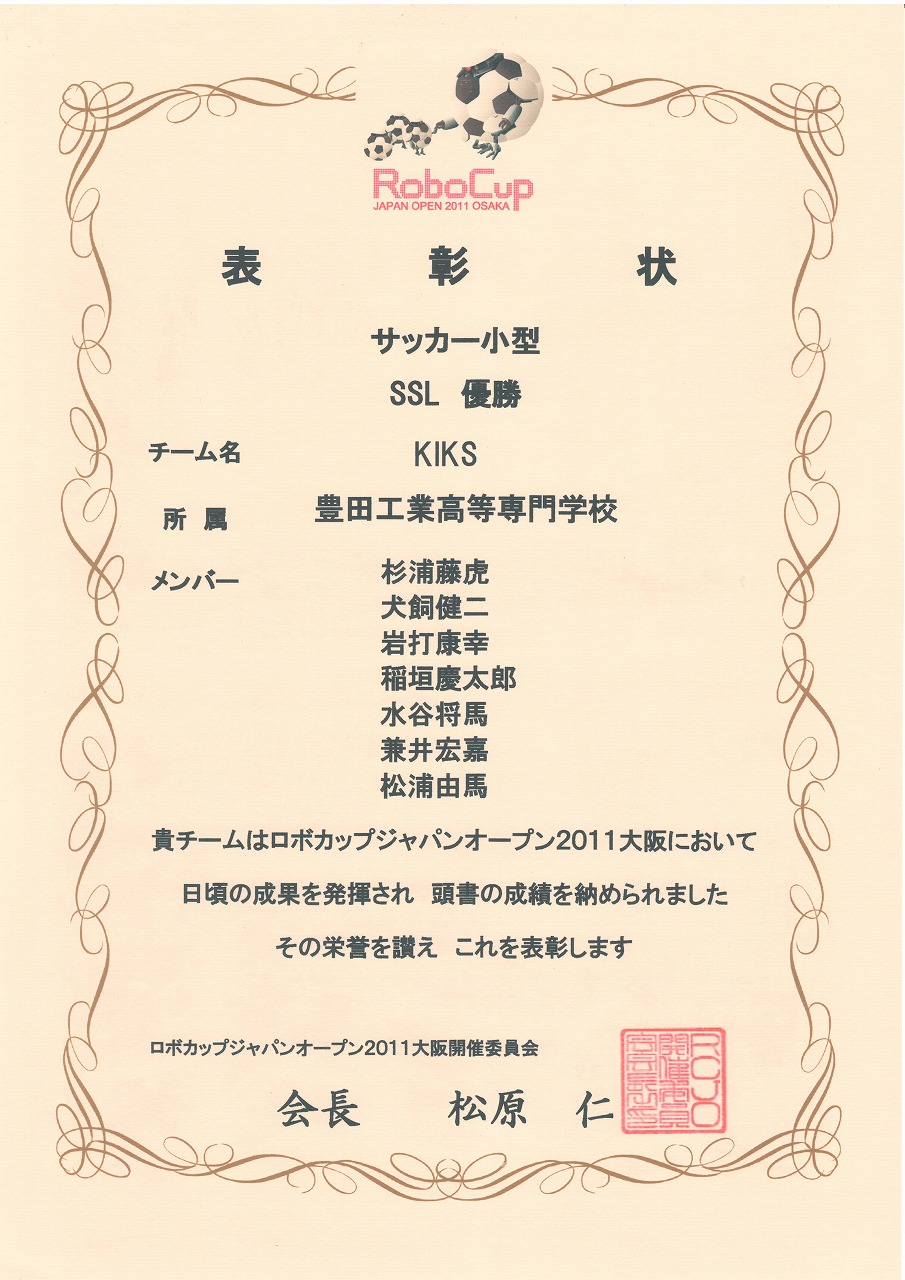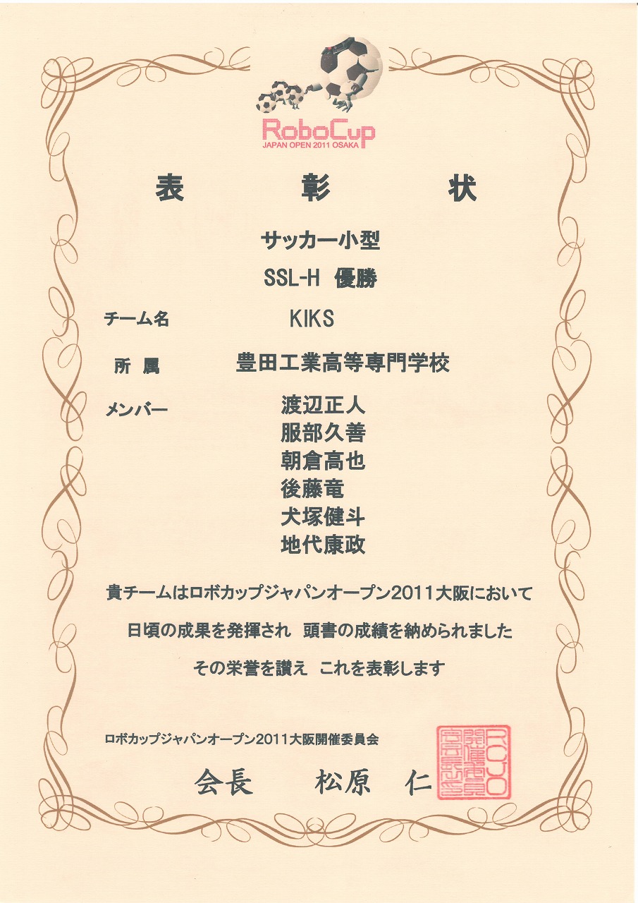 Certificate of first place of SSL and SSL-H in RpbpCup Japan Open 2011